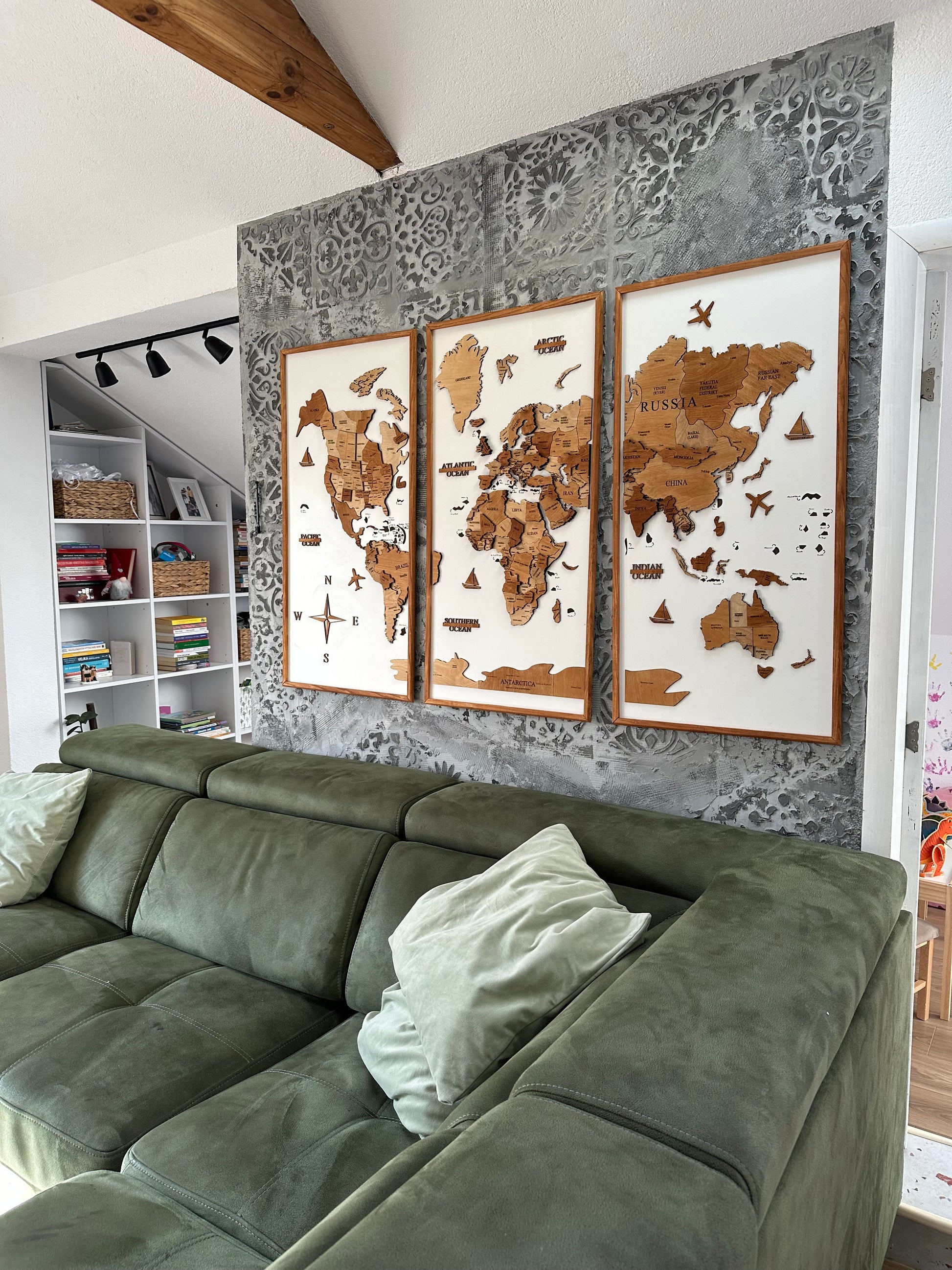 - Triptih 3D mapa sveta u tri odvojena rama